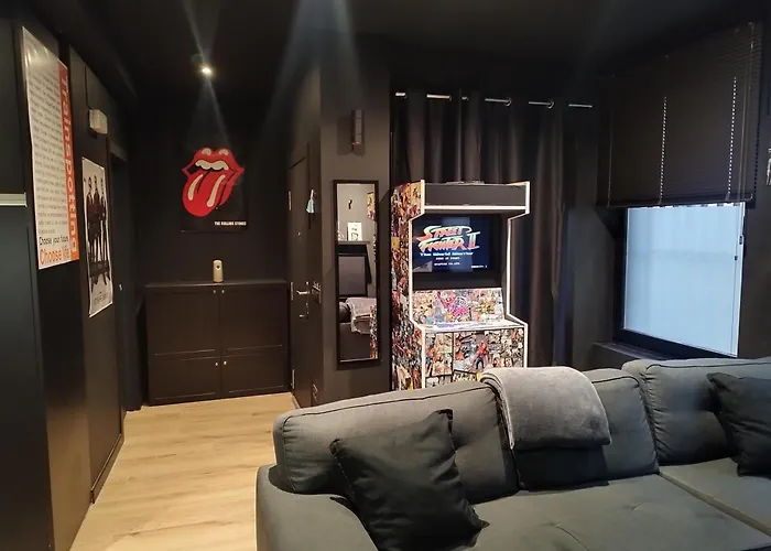 The Cavern - Gijon includes a seating area featuring sound-proofed windows, and modern facilities like a TV set. The accommodation is also furnished with a sofa set. Guests staying in the property will enjoy the convenience of a dryer and towels in the bathroom. Moreover, there is a bathtub and a separate toilet as well.